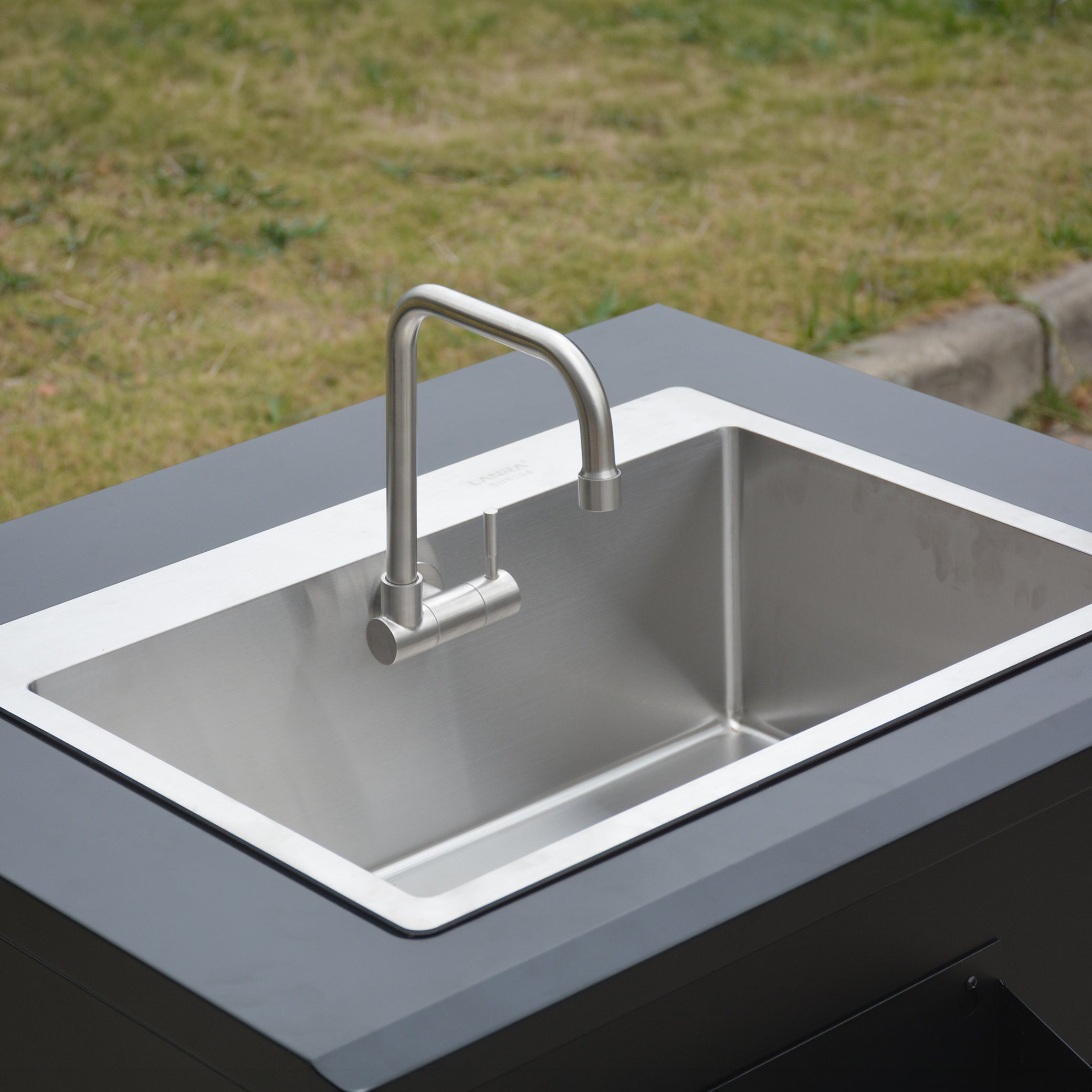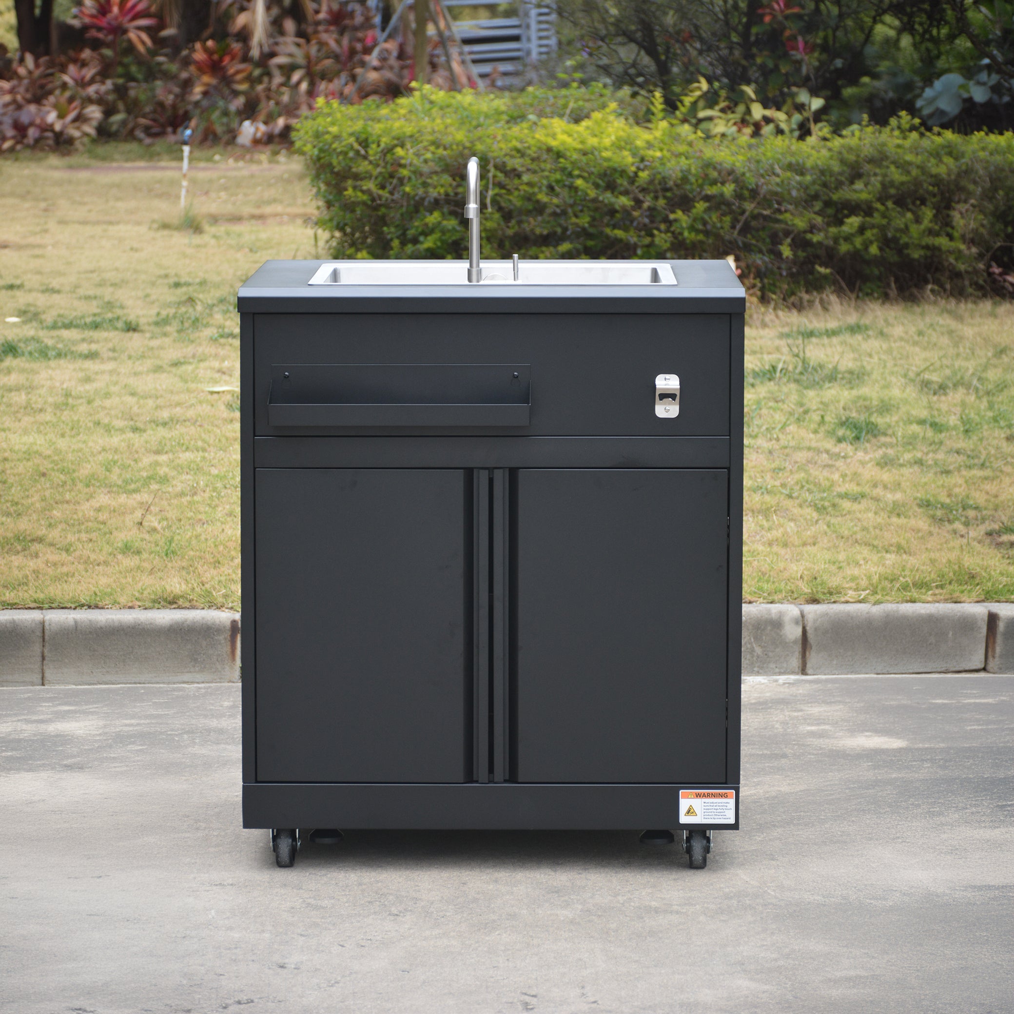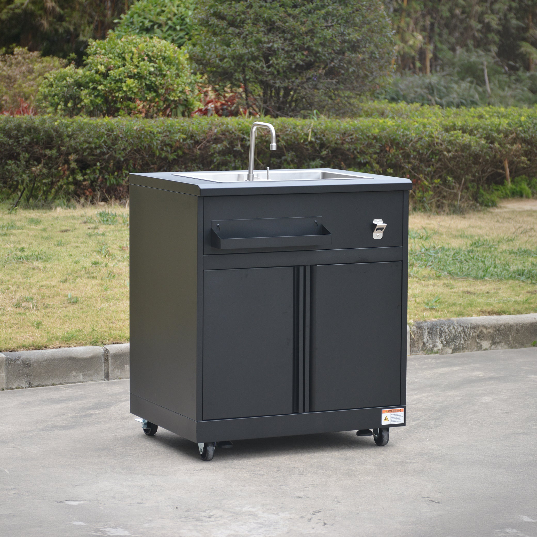 Sink cabinet with internal storage shelf - Deep stainless steel sink with foldable faucet