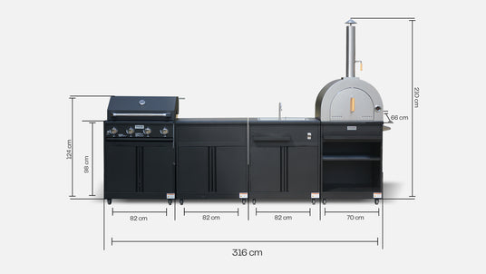 - Complete outdoor kitchen setup in one system