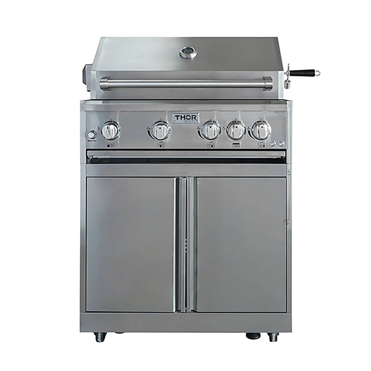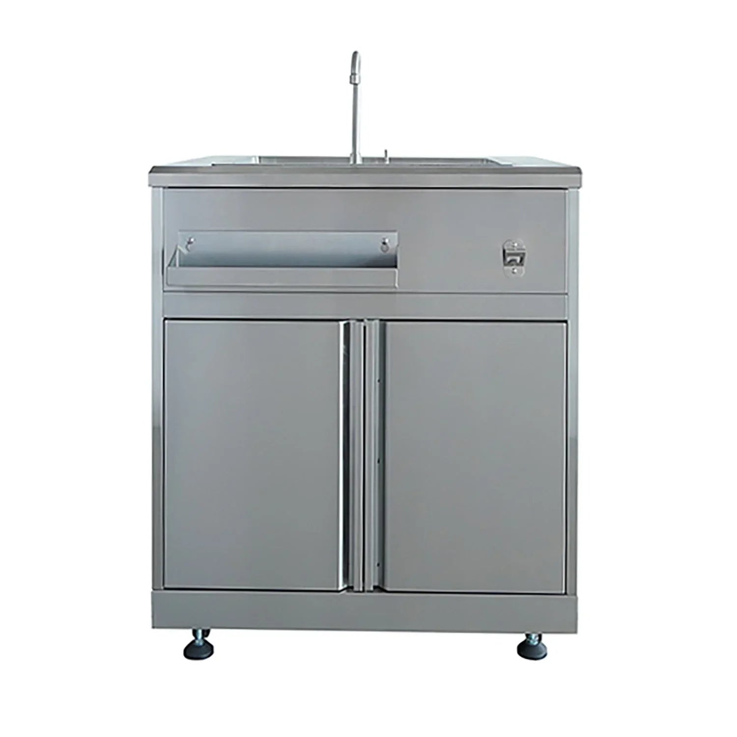 This THOR Kitchen modular product is designed for superior performance and durability. Its 4-piece suite is constructed with heavy-duty stainless steel and includes a 30-inch 5-burner grill with cart LP (which can be converted to NG), a 32-inch cold water sink with a foldable faucet, a 32-inch utility cabinet with 3-drawer storage, and a wood-fired pizza oven with a double-wall insulated oven door. The set also comes with a weather cover for the pizza oven and a cover for the grill, sink, and 3-drawer cabinet. This THOR Kitchen modular product shall be installed according to our instructions to achieve the best use effect.