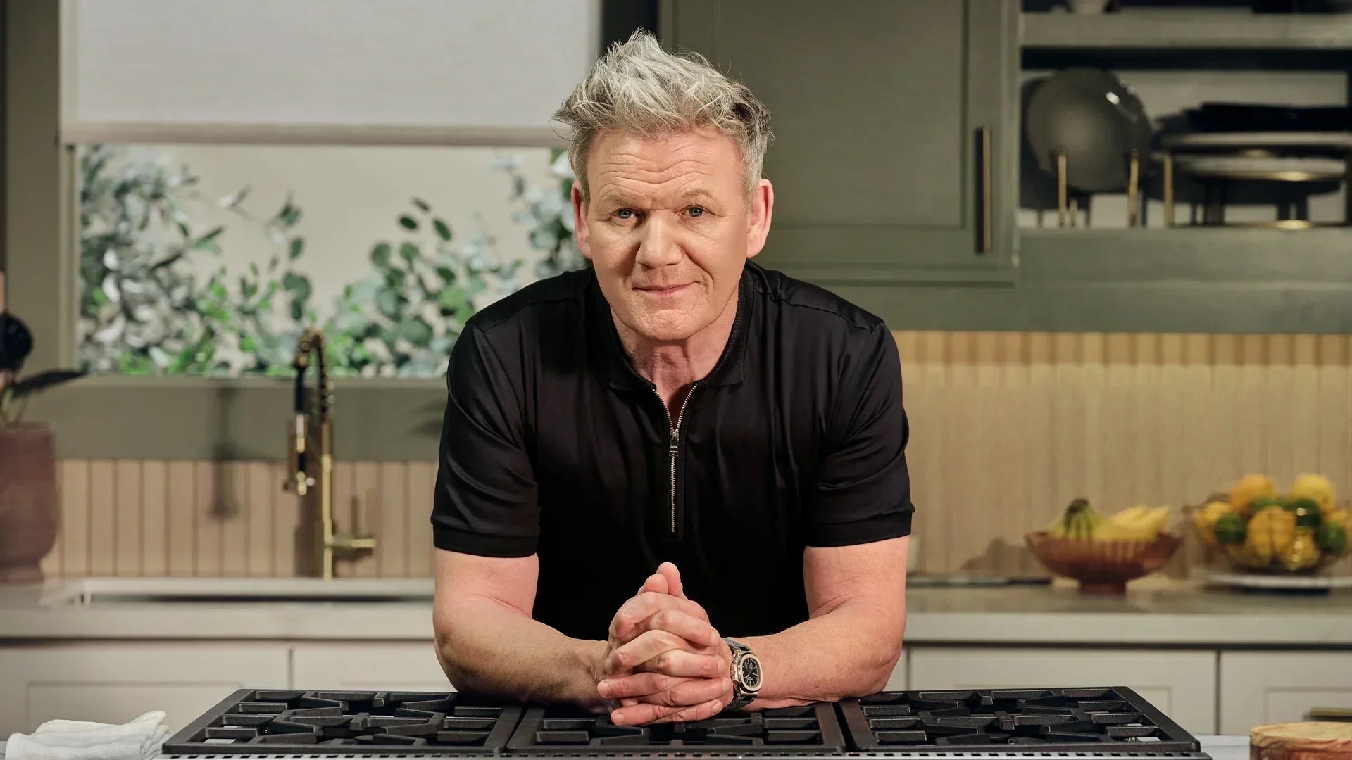 Chef in modern kitchen with Thor Kitchen stove, leaning on counter, kitchenware visible