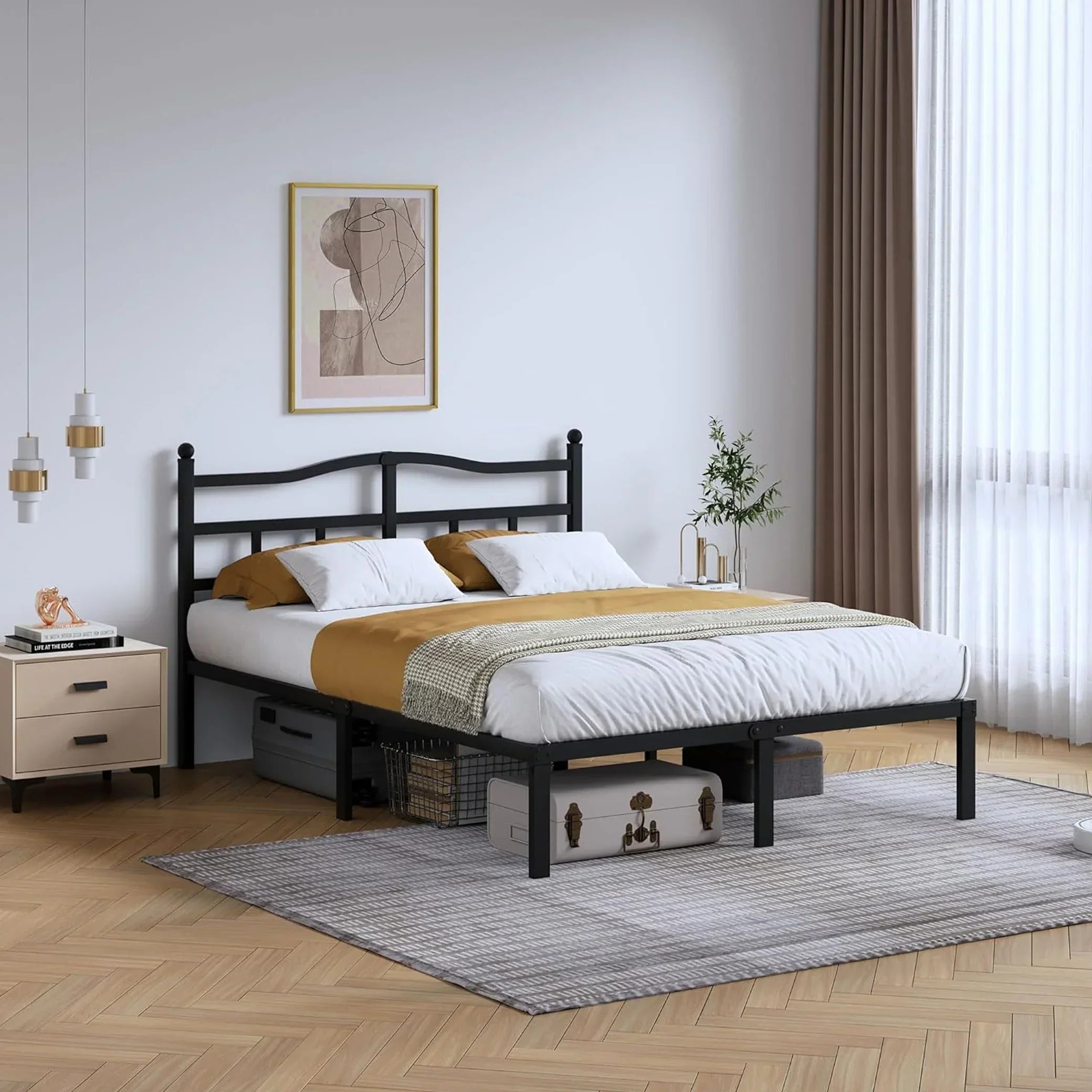 Этот металлический каркас кровати HOCC можно использовать без пружинного основания, обеспечивая при этом надежную поддержку матраса. Предварительно просверленные отверстия позволяют легко прикрепить изголовье или изножье для создания индивидуального дизайна.